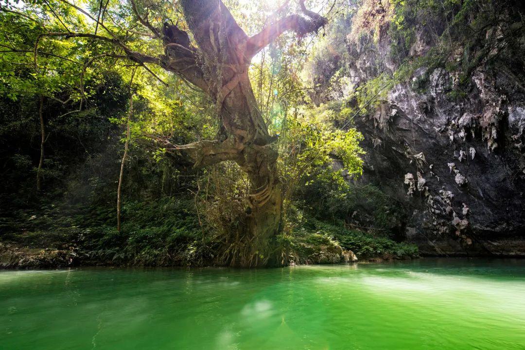坐船穿梭在岩洞中,碧波、岩洞、古树...这个充满神秘的小世界,让人忍不住探索。