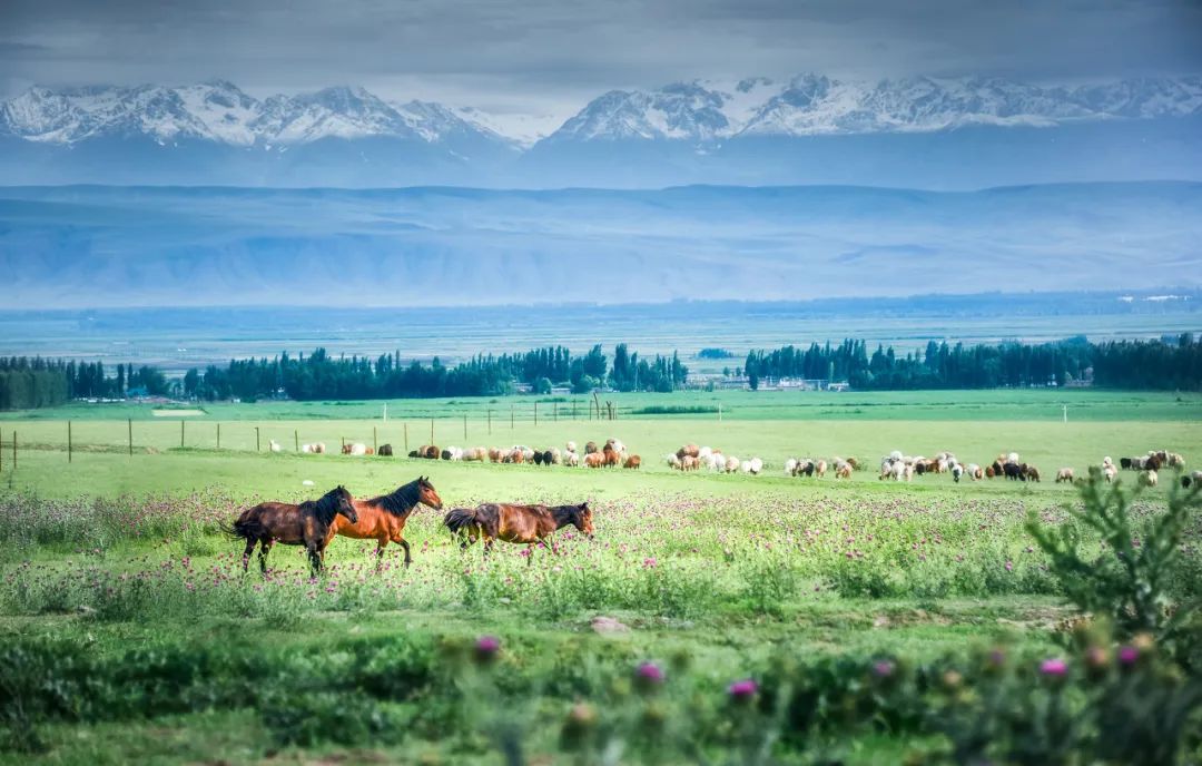 这个被誉为“塞外江南”的地方,一到春天就美爆了,蓝天、白云、雪山、草原、鲜花...帧帧如画。