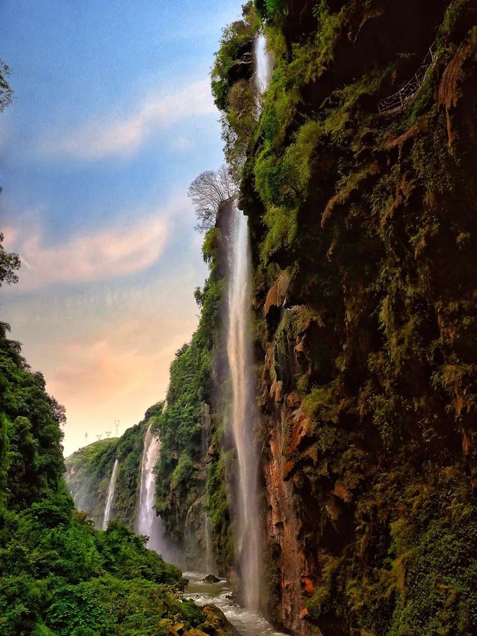 远远望去,苍穹、悬崖、瀑布...美好的如一幅画卷,让人挪不开眼。