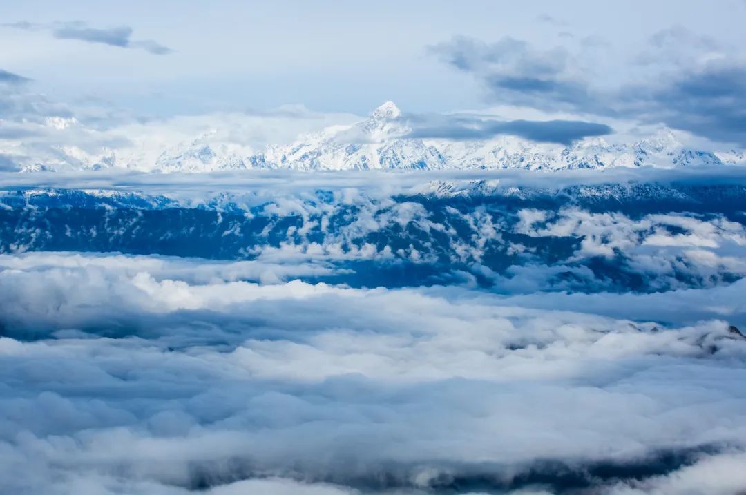 前有峨眉山、四姑娘山、瓦屋山,侧有贡嘎山,后有大渡河大峡谷,这里几乎可以看见天府之国的所有名山峻岭。
