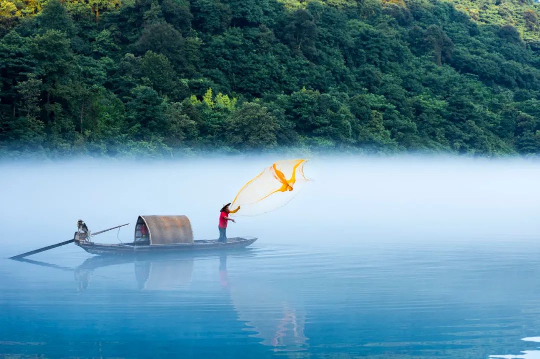 来到小东江,一定要坐一次这里的小船,飘荡在雾霭中。