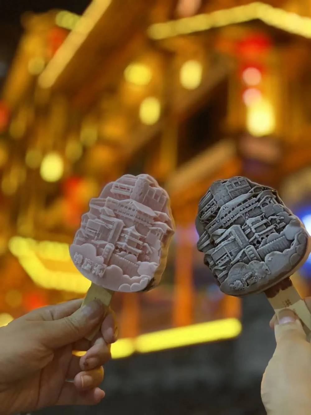 三星堆雪糕、圆明园荷花雪糕、大熊猫雪糕、兵马俑雪糕……今年5月份开始,全国各大景区纷纷加入文创雪糕的大军,夏季清凉消暑的雪糕也“火”到“出圈”。在重庆,洪崖洞、磁器口、长江索道、李子坝等各大网红景点,文创雪糕的出现,同样吸引大批游客前来“打卡”。