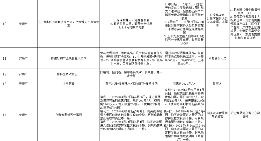 (一)针对安顺市户籍免门票优惠: