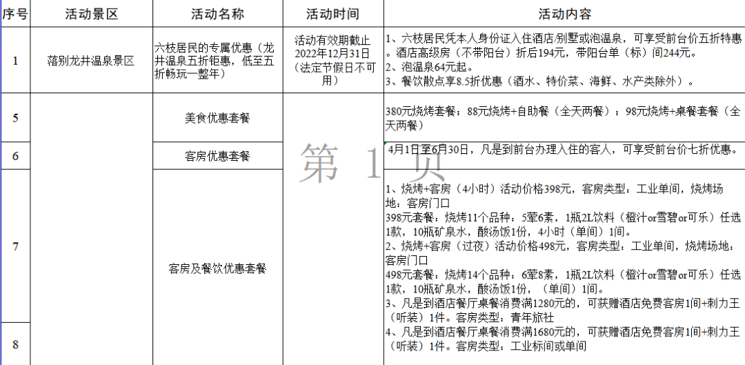 5.印江县云上居餐饮、木黄凤仪园农家乐餐饮针对全国游客,自2022 年 1月1日至2022 年12 月 31日,实行9折优惠。