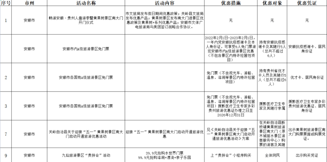 一、黄果树景区惠民活动