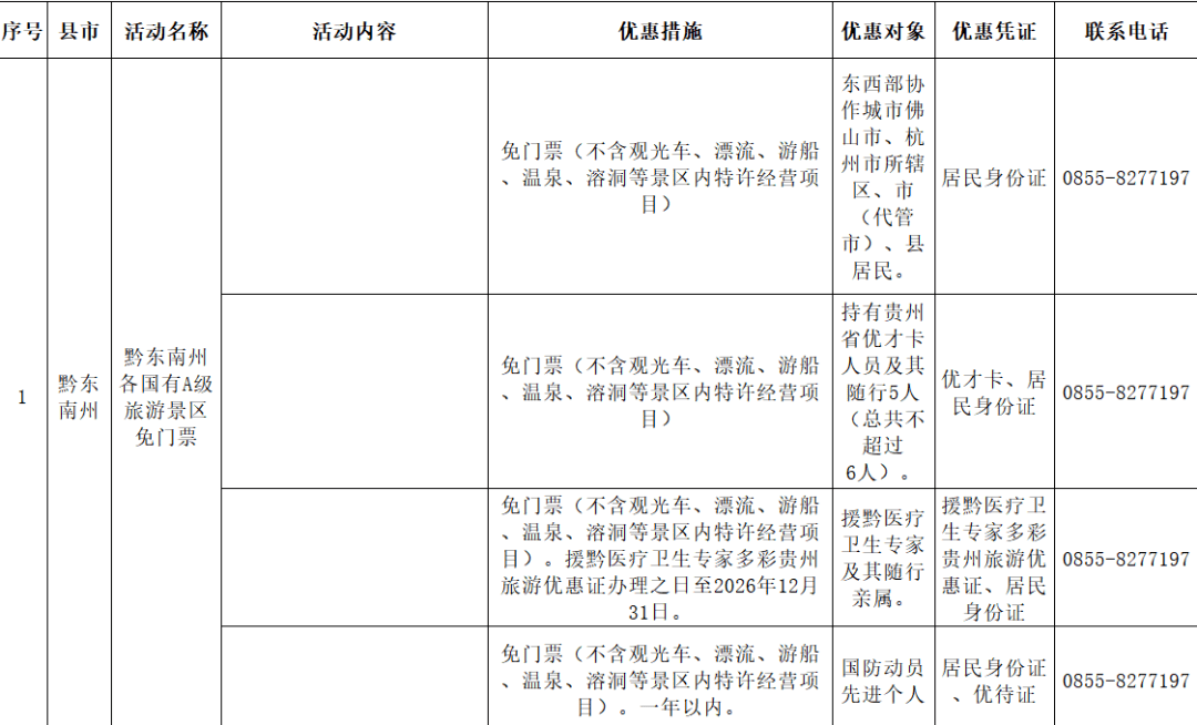 (二)针对贵州省户籍粉丝免门票优惠: