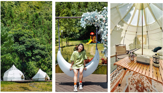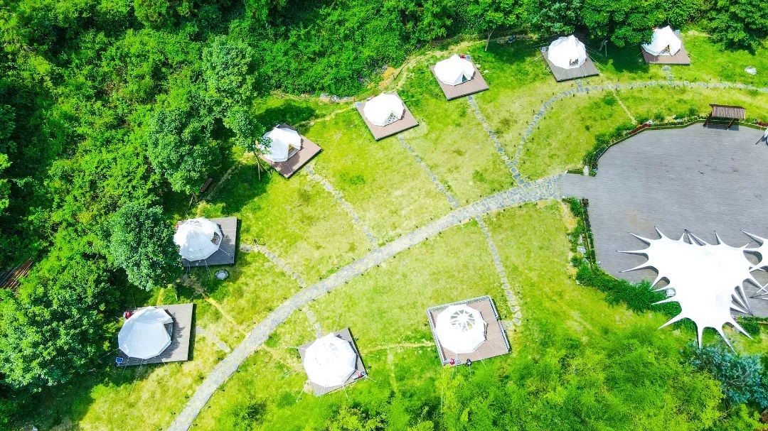 九洞天景区营地占地面积约为9.3亩,分为住宿、娱乐、研学、餐饮等区域,共10顶帐篷,2个天幕。露营基地距离九洞天景区船票售卖处约四百米,打开帐篷帘,便是九洞天景区的喀斯特岩溶大观。“把星河揽入怀窗,让美梦回荡九天”,入住这里,便可以开启一场一眼万年的时空之旅。夜幕降临,谁能拒绝在露营的时候蹦一场野迪呢?篝火点亮,音乐响起,在落日余晖里尽情释放自己的压力,把握当下快乐才是撒野的终极奥秘!