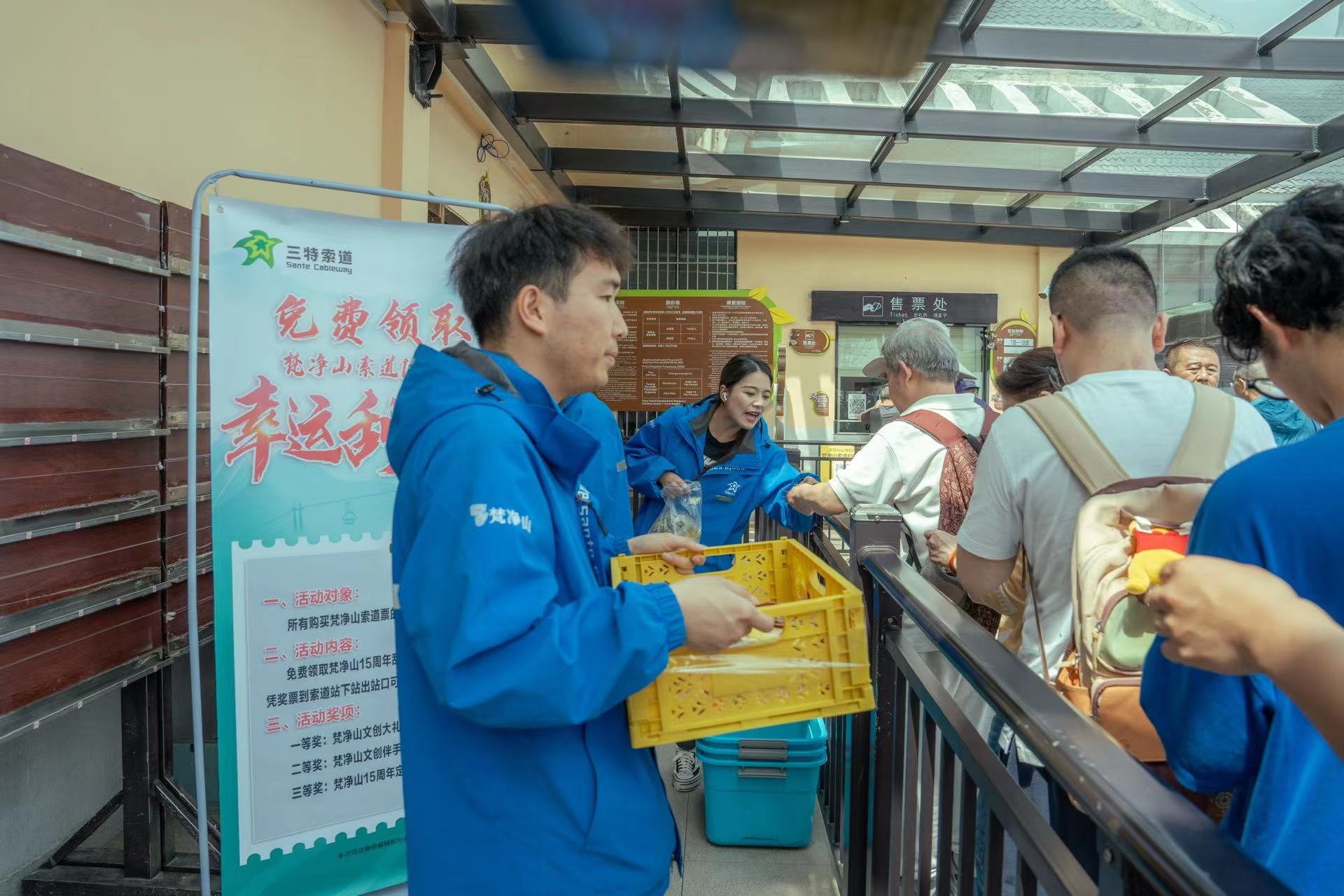 “幸运锦鲤”“刮刮乐抽奖”“互动赠送” 梵净山索道安全运营15周年庆欢乐多