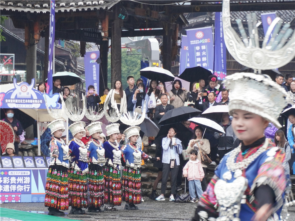 10月13日,“多彩贵州游·非遗伴你行”第四站活动在西江千户苗寨景区举行。活动为期三天,主题为“非遗载道·薪火相传”,旨在更加凸显西江千户苗寨景区的苗族风情,让游客感受苗寨美景与非遗盛宴的双重体验。