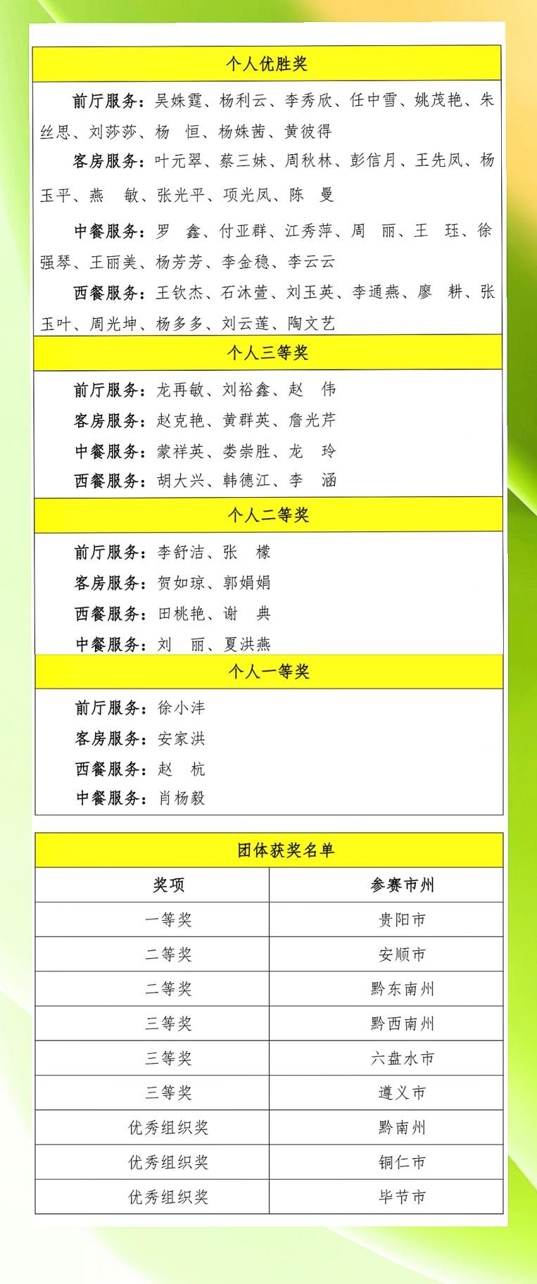 2025年全省旅游星级饭店从业人员技能大赛获奖名单