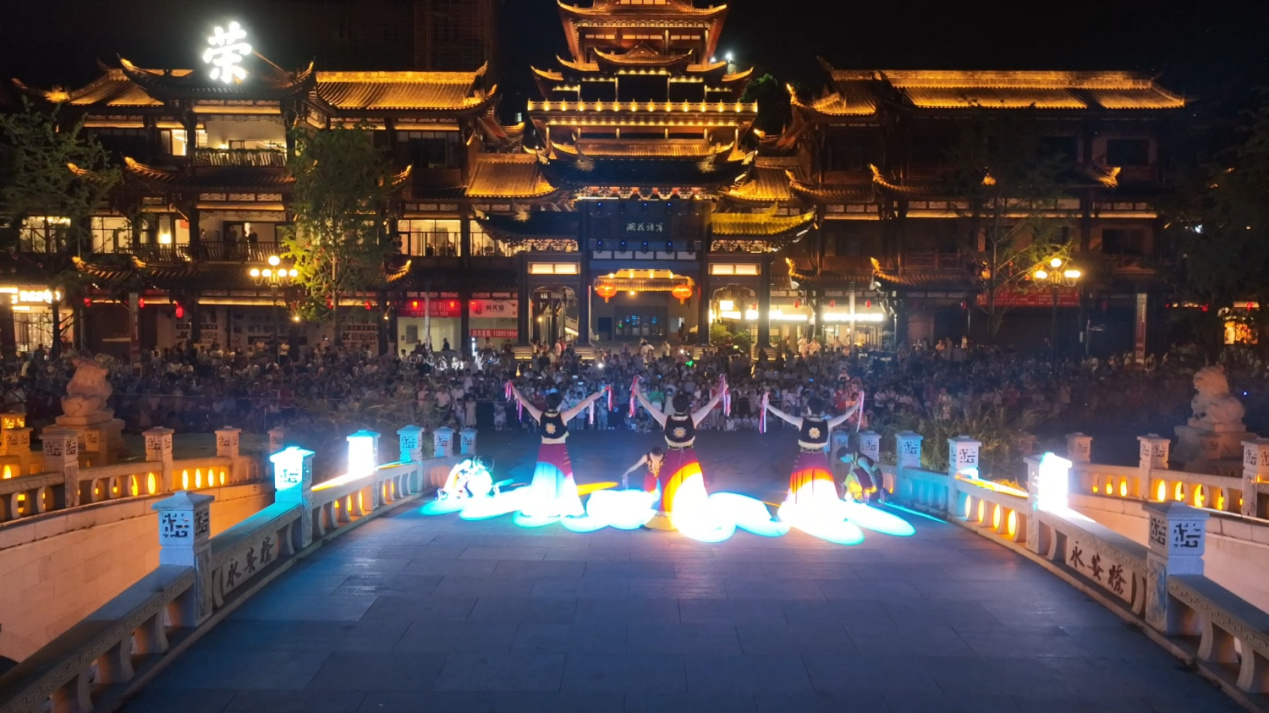 夜幕降临,古城瞬间切换成光影奇幻世界:璀璨的春节主题灯会点亮街巷,北极光舞秀如梦如幻,流淌于古建筑之间。而最震撼的当属非遗花火大会——打铁花、火壶、喷火、火棍、火魔方、炭花舞等古老技艺轮番上演,火花如雨、烈焰如龙,上演“火树银花不夜天”的夜游盛宴。