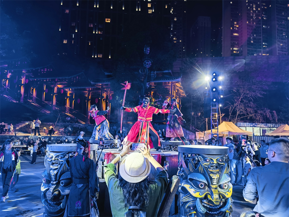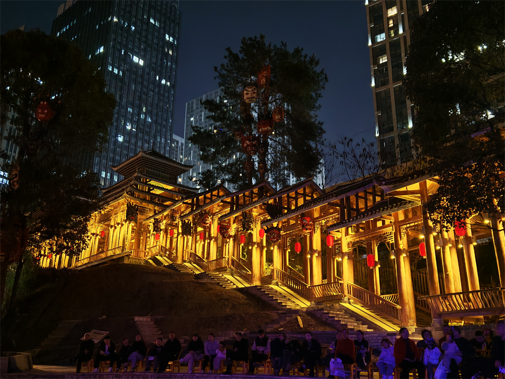 业内人士指出,这种“演艺+餐饮+互动”的复合型夜游产品,正成为贵阳文旅消费的新增长点。据介绍,苗疆秘境自开业以来,一直致力于探索非遗的“活态传承”。与传统的舞台展演不同,秘境将鼓楼、风雨桥、六柱祭坛等实景转化为演出空间,观众佩戴傩面即可成为仪式的一部分。长桌宴、打糍粑、高山流水敬酒等互动环节,更让文化从“观看”变为“参与”。