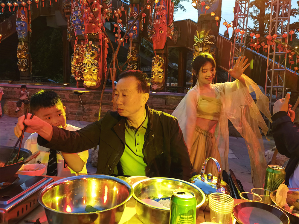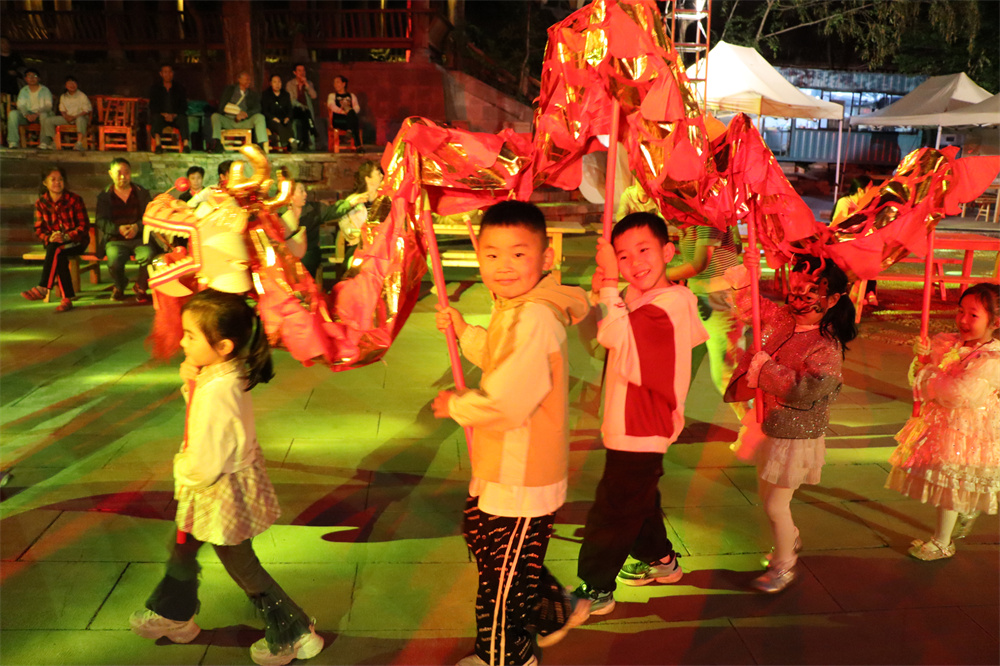 现场,金色长龙在人群中穿梭,游客们争相触摸龙身祈福;篝火燃起后,所有人手拉手围成圈,齐声高喊“苗疆秘境你最棒”,火光映红了每一张笑脸。据景区工作人员介绍,狂欢节期间每晚均有类似的活动安排,且会根据季节调整主题,市民、游客可关注“苗疆秘境”官方账号获取每日节目表。